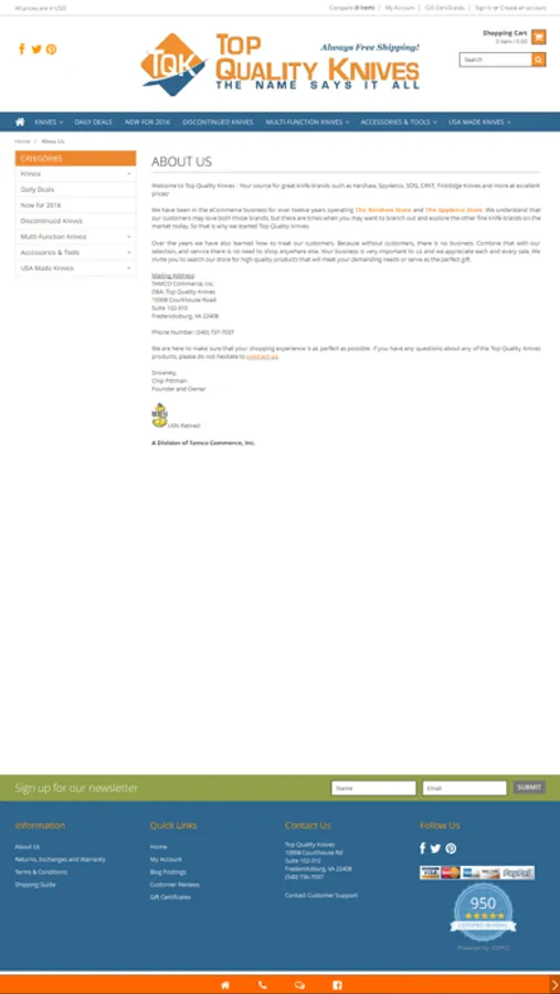Your complete source for Columbia River, Kershaw, Firstedge Knives, Spyderco, Cold Steel, SOG, tactical military and law enforcement automatic, and assisted opening.
