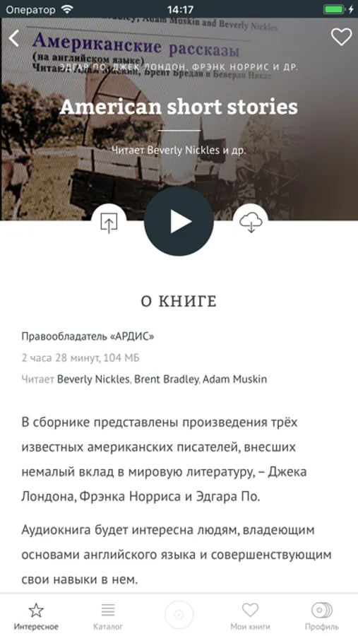 Вы без труда найдёте желаемое в обширном и удобно структурированном каталоге, откроете для себя новые горизонты, изучая любовно собранные нами тематические коллекции, узнаете, что слушают другие, и что рекомендуем послушать мы. Выбирайте осознанно: в каждой аудиокниге предусмотрен фрагмент для предварительного прослушивания. Вы оцените быструю загрузку, разбивку на главы и прочие незаметные, но очень приятные мелочи.