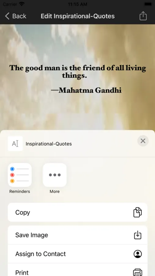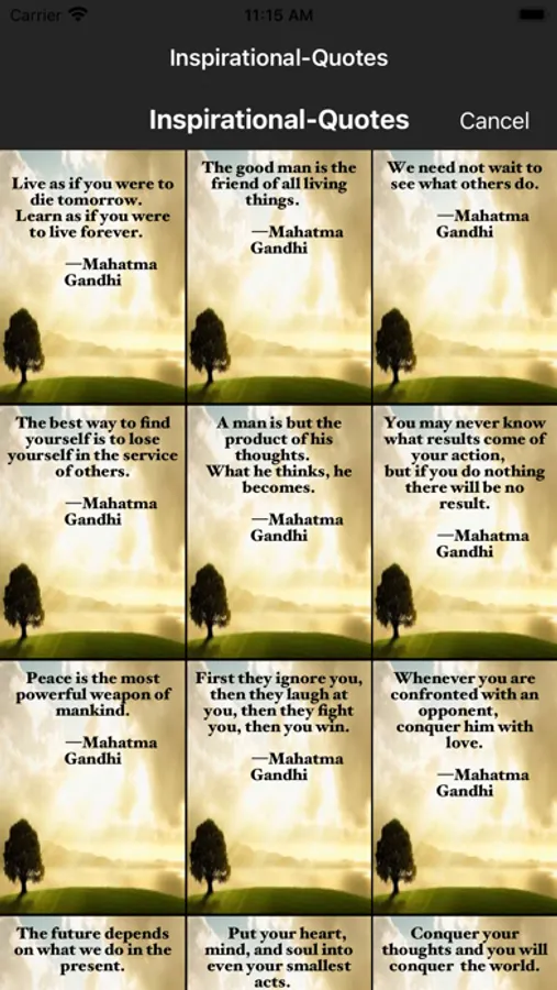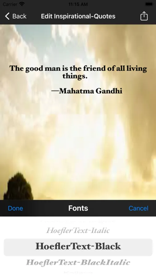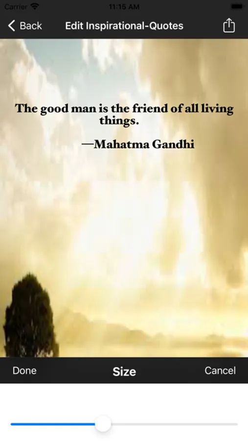 This inspirational quotes app allows choosing various quotes, background images and allowing them share in social media or sending them through email.