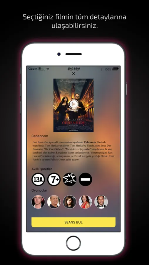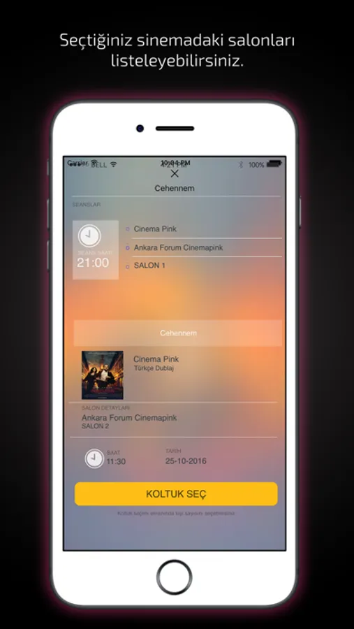 - Seçtiğiniz şehirdeki seansları listeleyebilirsiniz