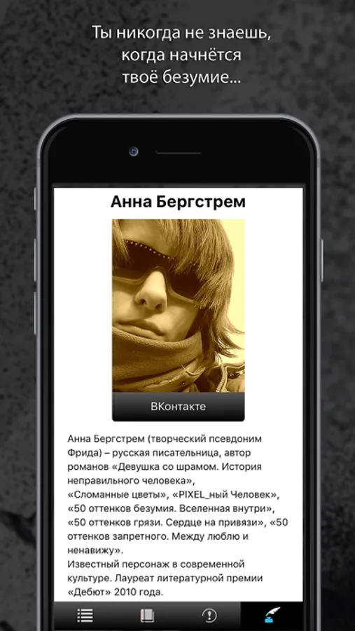 Анна Бергстрем (ФРИДА) - Писатель, автор книг "Девушка со шрамом. История неправильного человека", "Сломанные цветы", "Вселенная внутри", "PIXEL_ный Человек", "50 оттенков безумия", "50 оттенков запретного", "50 оттенков грязи", "Комната с пятью углами" и др.