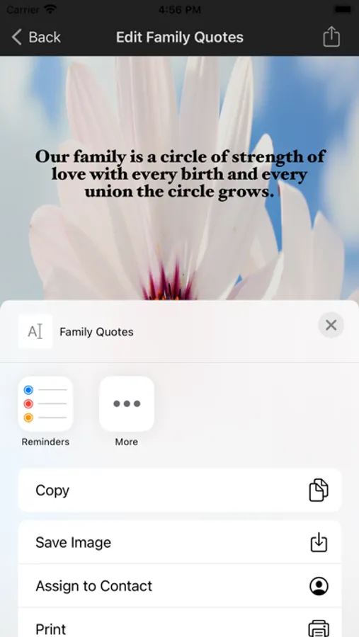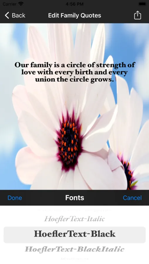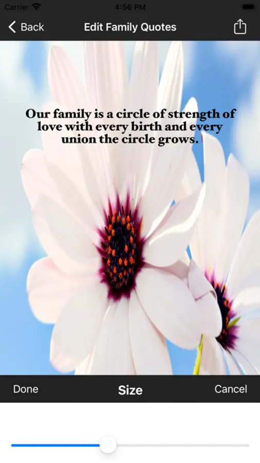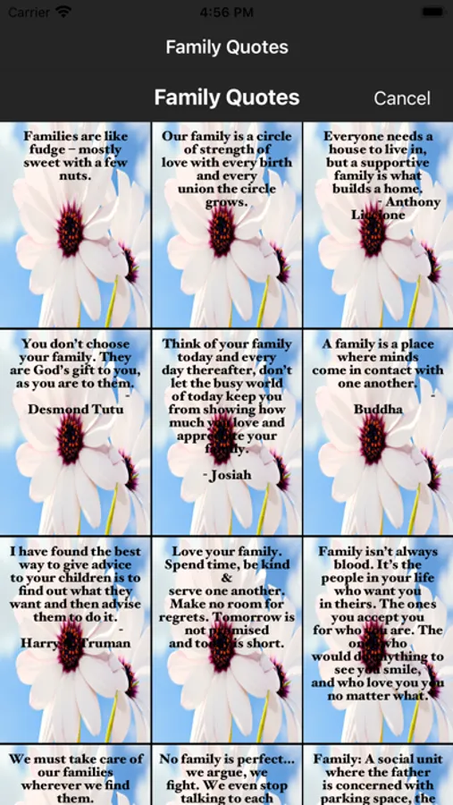 This family quotes app allows choosing various quotes, background images and allowing them share in social media or sending them through email.