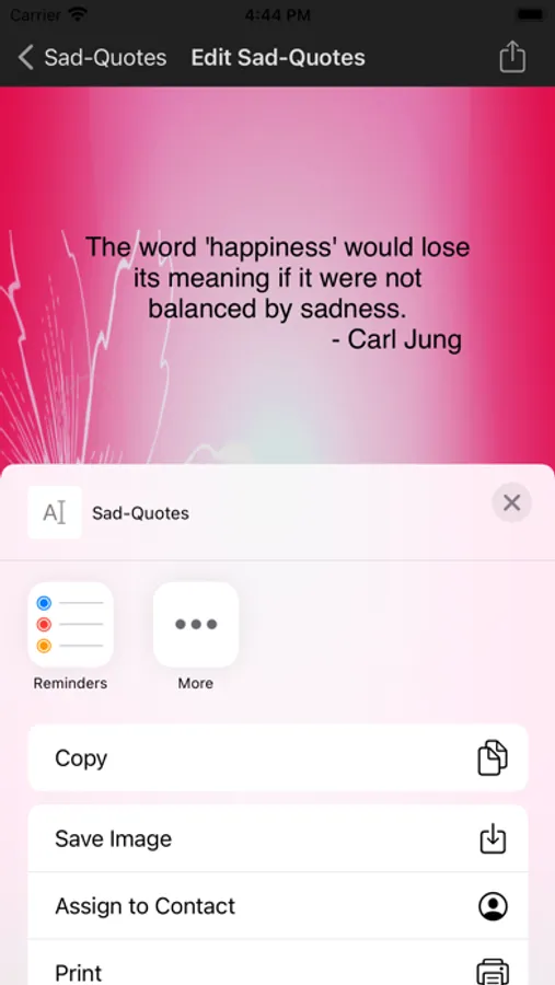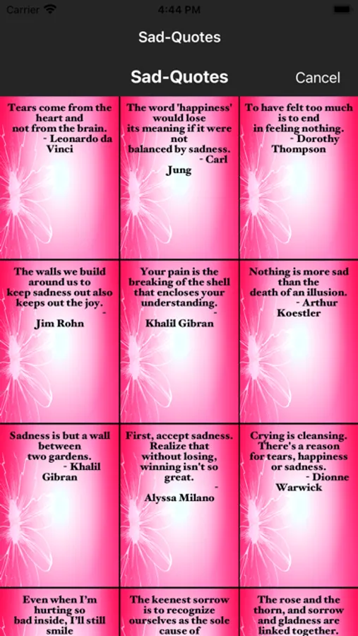 This sad quotes app allows choosing various quotes, background images and allowing them share in social media or sending them through email.