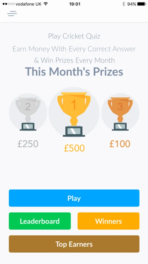 Do you think you know cricket? Try our cricket quiz app and test your cricket knowledge. This app will stretch your cricket knowledge to the limits. Not only that it also lets you earn money with every correct answer. Not to mention that you get a chance to win prizes every month as well. We give away prizes to top 3 on the leaderboard. All you need to do is to keep playing and climb up the leaderboard. At the end of month top 3 winners are awarded.