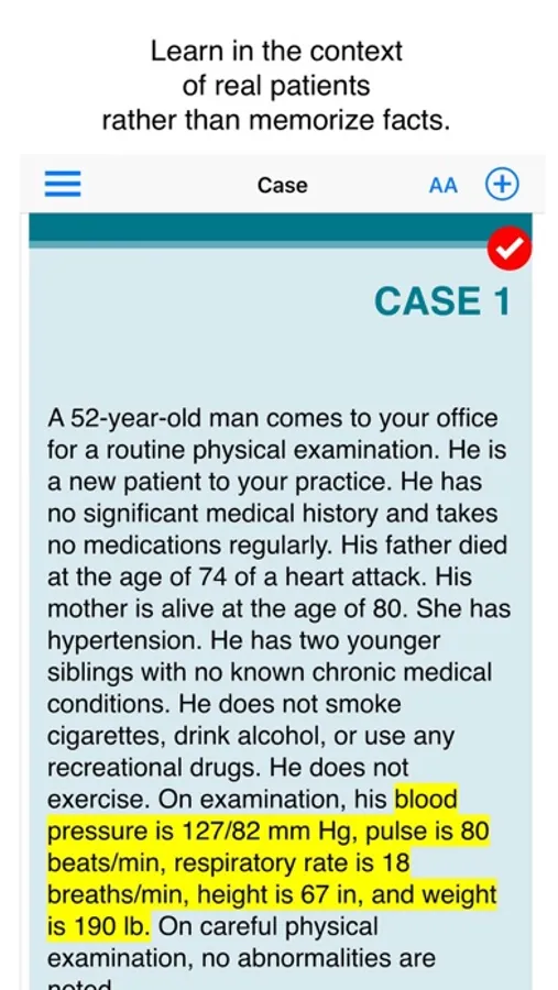 This free application includes 1 sample case study from the 60 that are available through an in-app purchase of $34.99 of Case Files Family Medicine.