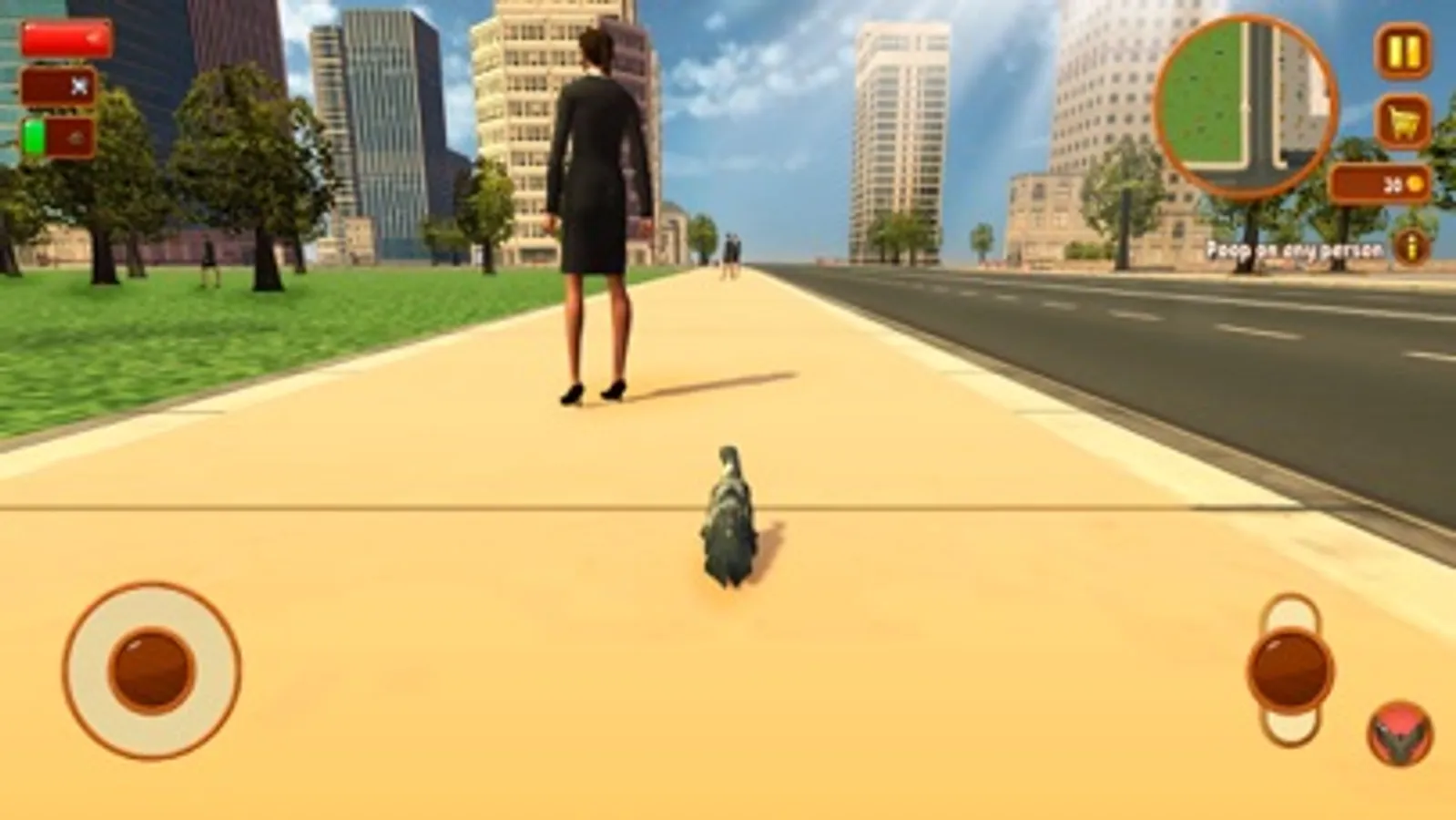 Get ready for the ultimate bird city simulator and fly like a pigeon! Do a crap on the citizens to earn points, buy power-ups and level up your city bird’s abilities! Maintain health, hunger and energy rate to set up a flock of pigeons! Set up your own flock, fight for your life against cats, snakes, and other predators, compete against other city animals and have fun!