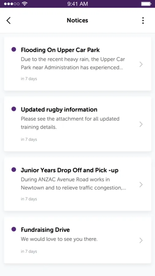 The notices section keeps you informed of important daily notices as they become available. Push Notifications will also be sent to inform you of any urgent or important information. Buses are late? The notice section will alert you.