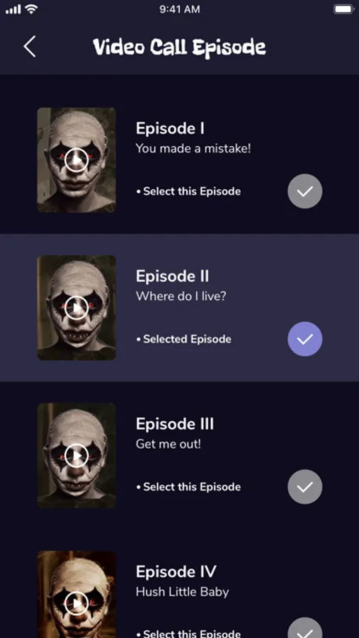 Download a sinister app that will send chills down your spine. Video Call from Killer Clown features pre-recorded video calls from a creepy killer clown, performed by our professional voice actor. Whether having a little scary fun for yourself or surprising your friends, Video Call from Killer Clown is the perfect app to grab this Halloween!
