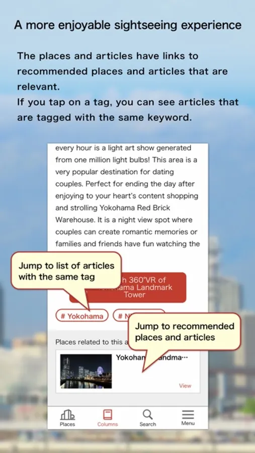TABIDO not only finds the best places for you to go, but also navigates you to the best way from your current location to tourist spots.