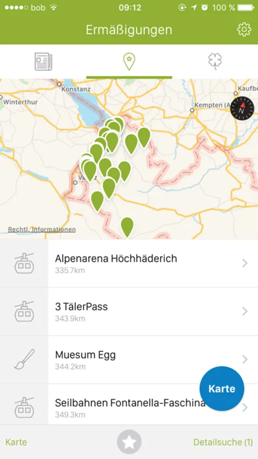 - Listen und Kartenansicht aller Familienpass Partnerbetriebe und Vergünstigungen