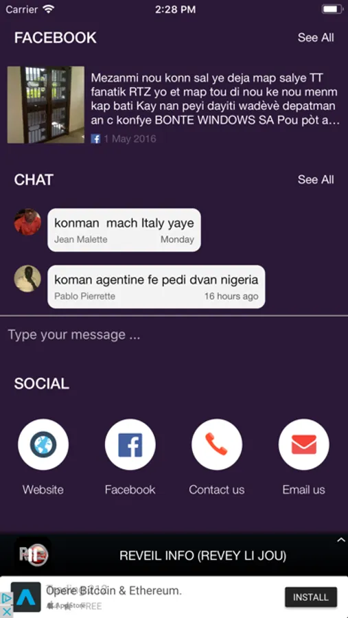 • Facebook and the latest Facebook Posts (Integrated in the app)
