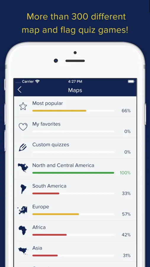 Take on the world or conquer it one region at a time. The app includes 300+ different exercises to test your map skills. Learn to distinguish Tasmania from Tanzania and France's bleu, blanc, rouge flag from Russia's white, blue and red stripes. Cities, countries, capitals, continents and bodies of water are all in the mix. Pinpoint Kilimanjaro and Mount McKinley in the mountains test or discover exotic islands in the far flung reaches of the globe when trying the world islands quiz.