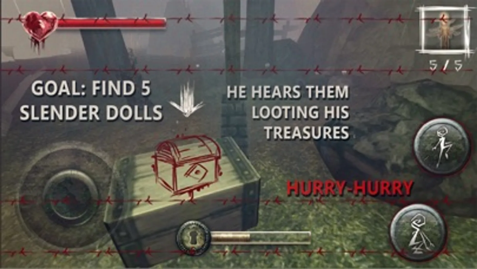 The goal for the Slenderman is to catch all students before they destroy his amulet-dolls.