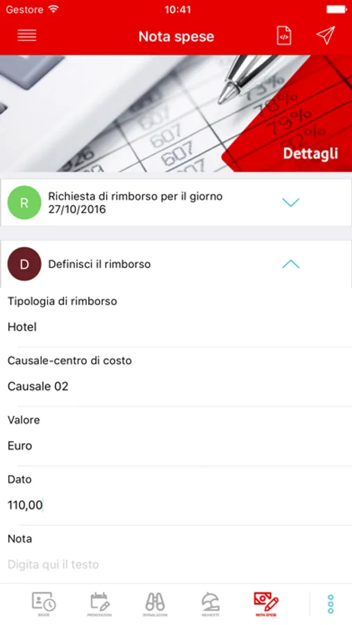 inserimento nota spese