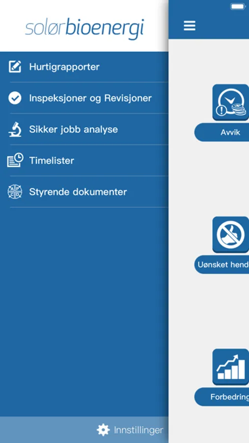 Dette er Solør Bioenergis app til bruk ved innrapportering av HMS-hendelser og kvalitetsrelaterte saker. Appen inneholder systematikk for dokumentasjon av gjennomførte sikker-jobb analyser / risikoanalyser og en annen for inspeksjoner og revisjoner.