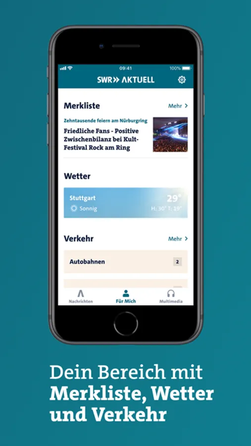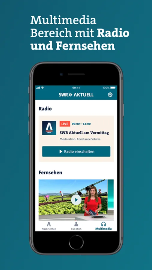 Du willst SWR Aktuell im Radio hören oder dir die letzte Ausgabe der Fernsehnachrichten ansehen? Auch das geht bequem und einfach über das Menü am unteren Bildschirmrand.