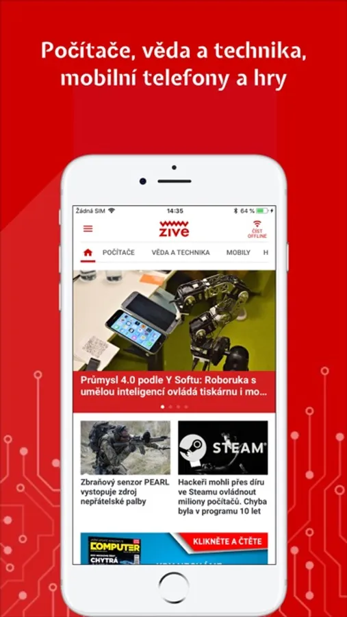 Na Živě.cz nás baví počítače, internet, věda a technika. V aplikaci si můžete pohodlně přečíst všechny naše články. Vedle počítačového Živě zde také najdete obsah webů MobilMania, VTM, AVmania nebo Doupě. Všechny články jdou uložit pro pozdější čtení. Aplikace také nabízí stažení všech článků pro offline režim, kdy si je pak můžete pohodlně číst bez internetového připojení, nebo na místech se slabým signálem.