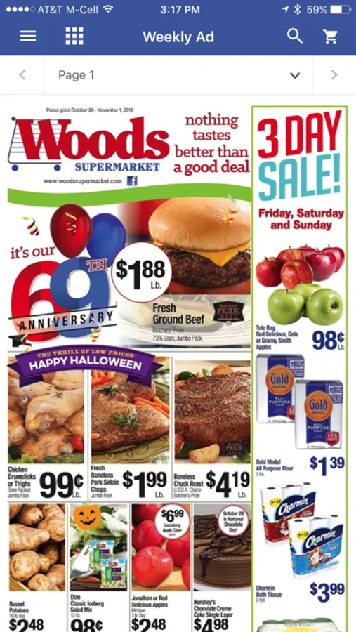 Woods Supermarket app for managing shopping lists, viewing weekly specials, clipping coupons, finding locations and more.