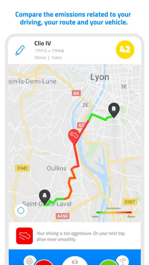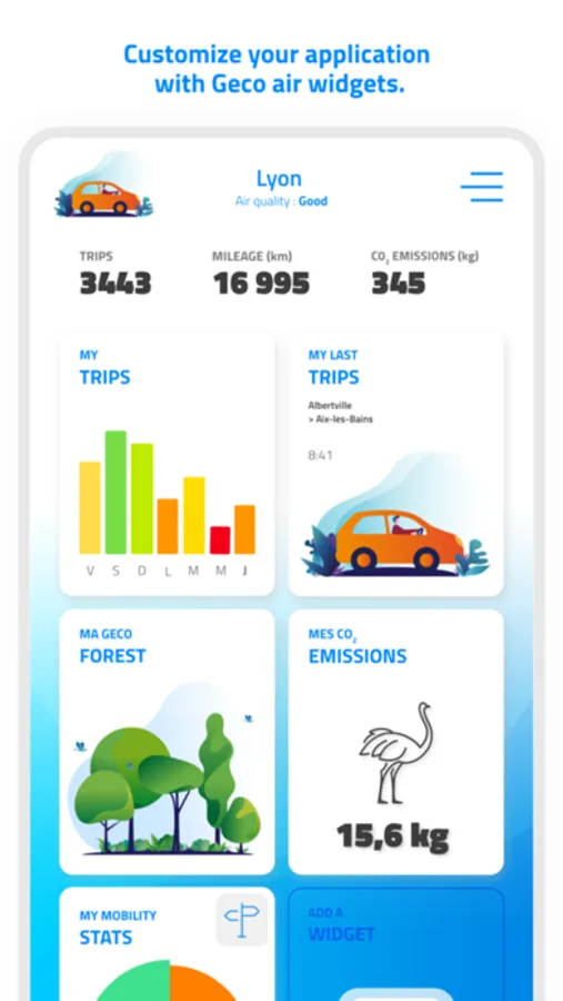 Geco air is your mobility companion that allows you to reduce the pollution linked to your displacements. Benefit from personalized advice to improve your driving style or mobility habits.