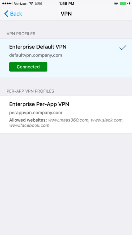 IBM MaaS360 VPN application provides SSL based secure VPN access to corporate network and applications.
