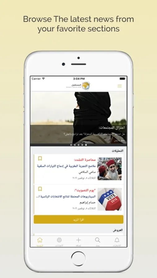 With the future center for advanced research and studies (FARAS) Mobile App, you can view content in both Arabic and English, design your home page according to field interests, and also receive notifications on subjects of interest, in addition to saving articles in order to access them offline.