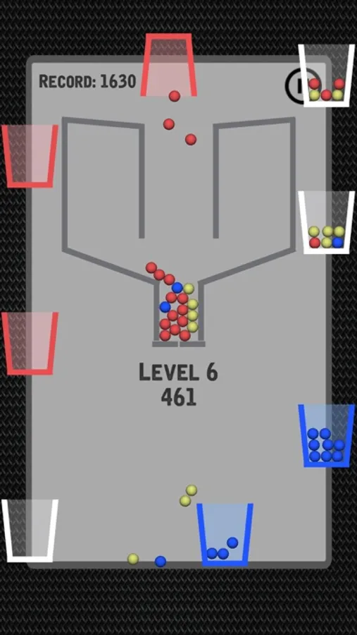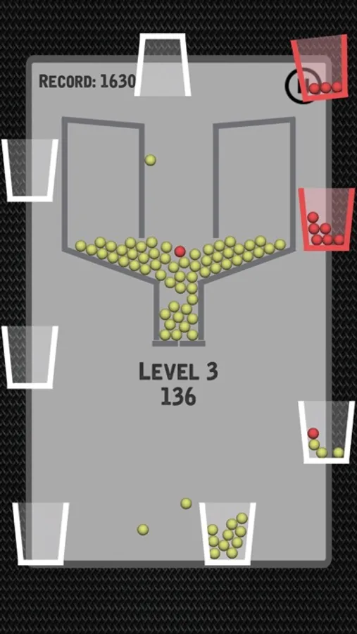 Each level speeds up the cups. On higher levels, cups will change color. Colored cups produces higher value colored balls.