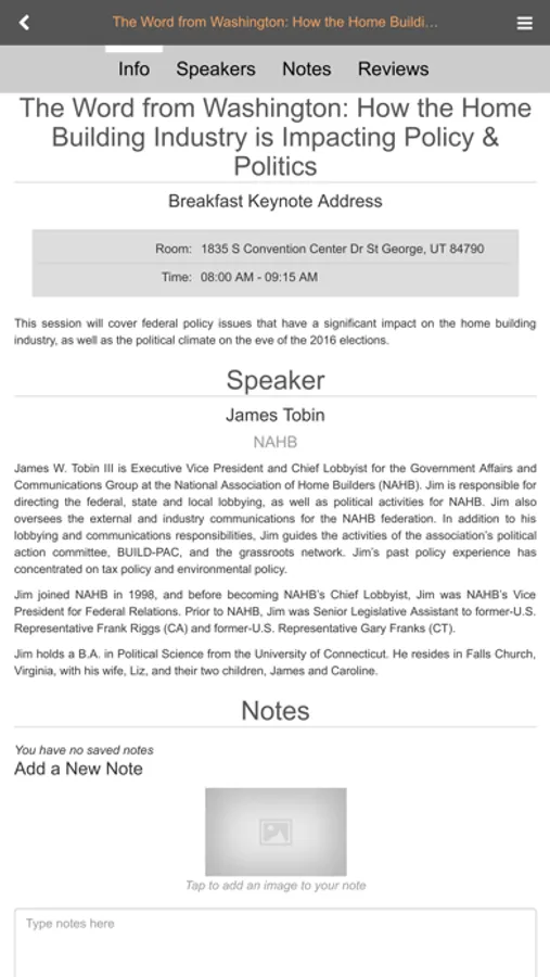 You can view speaker bios, class descriptions, seminar handouts, conference agenda, and other information materials of the Utah Building Industry Conference. Earn CE credit for attending the conference, and use the app to help you organize your notes.