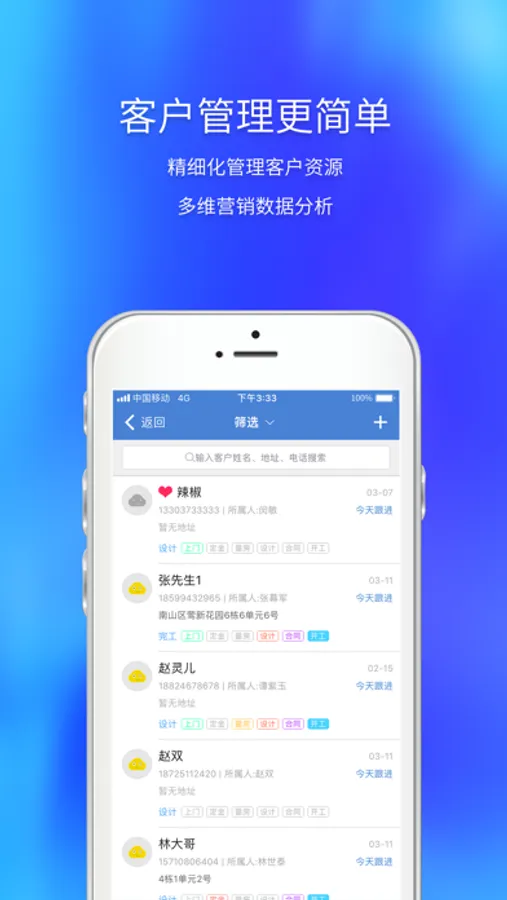 应用,共享的公海池客户,完整的装修流程服务,友好的用户体验。