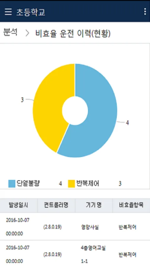 3. Status of energy: energy savings displayed, overuse of energy detection devices