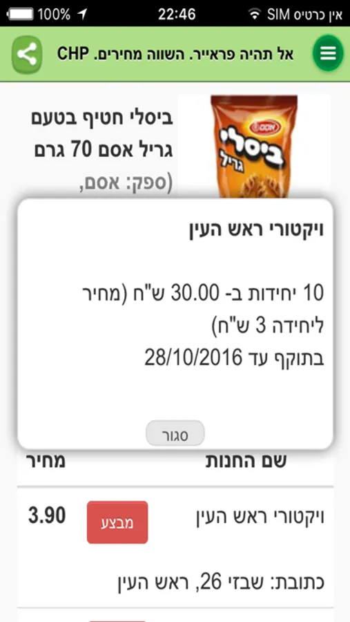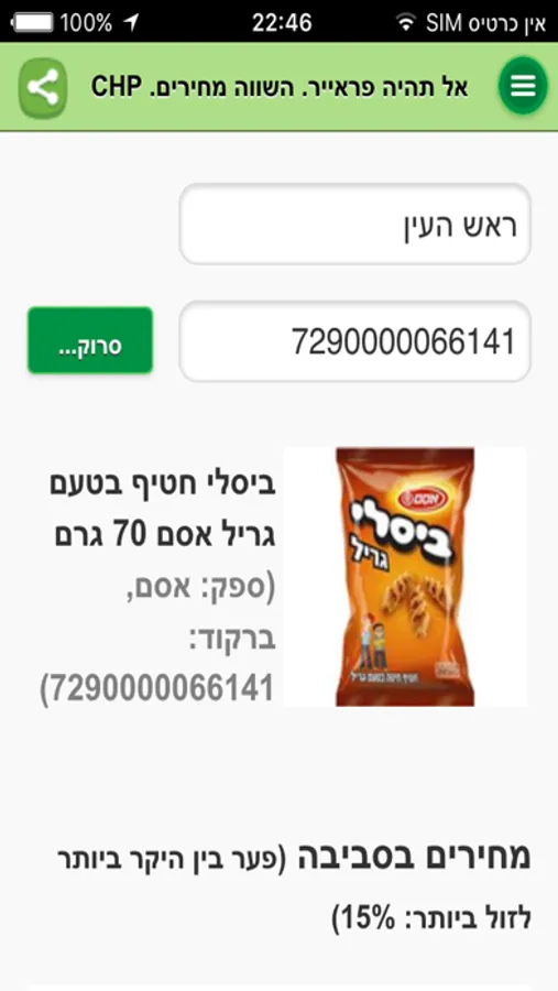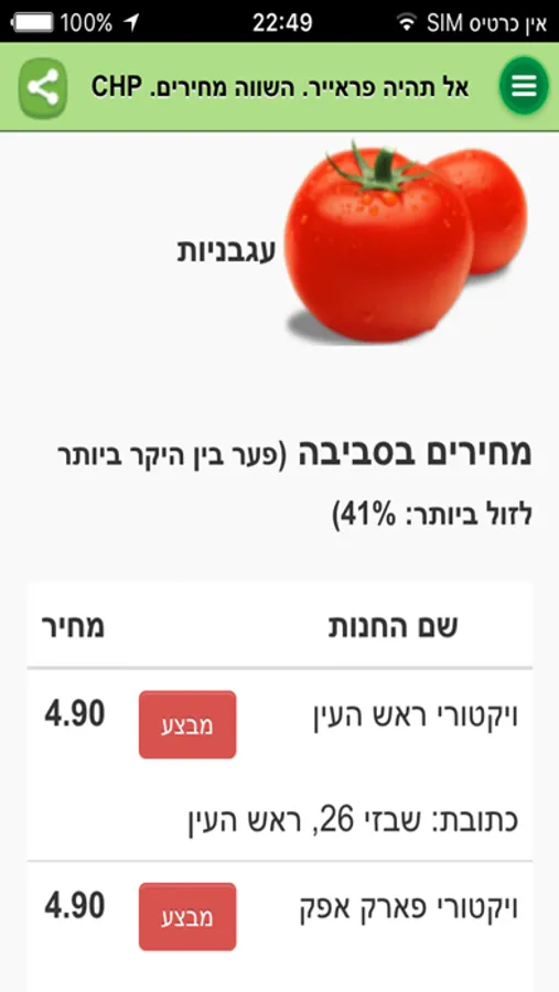 CHP הינה אפליקציה להשוואת מחירים מוצרי מזון בין כל סניפי הרשתות הגדולות ברדיוס של עד 10 קילומטר.