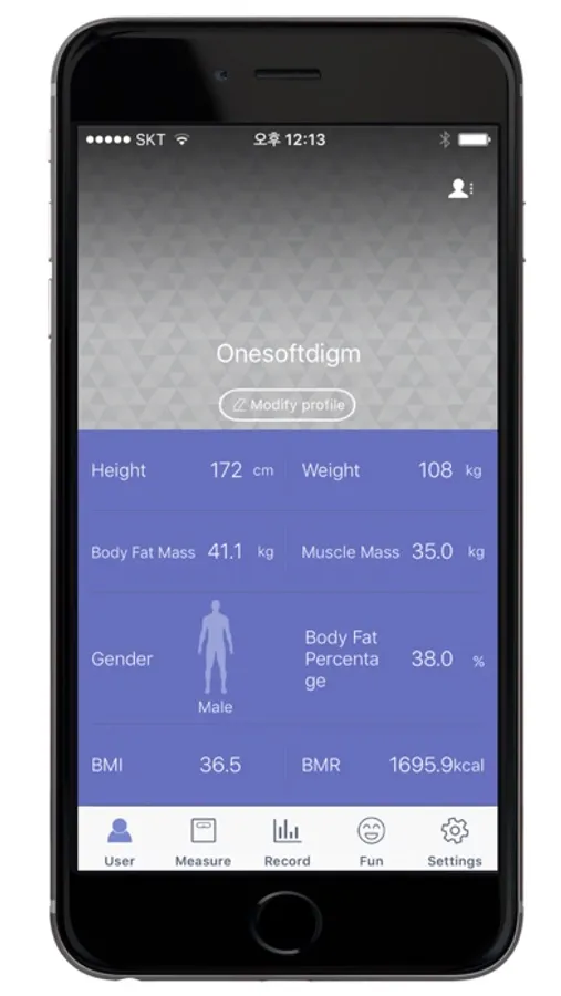 ONE SMARTDIET is the portable body fat measurement device to measure body composition through four contact exectrodes BIA(Bioelectrical Impedance Analysis; BIA).
