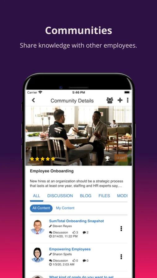 With the SumTotal Mobile App, managers and employees can learn, manage and give feedback, anywhere at any time. The app delivers an innovative experience on devices that are used every day including allowing employees to take the training they need to succeed in their current role or prepare for a new one, providing access to everything from a complete employee profile to compensation and performance details to the ability to provide continuous feedback to colleagues – increasing productivity and engagement.
