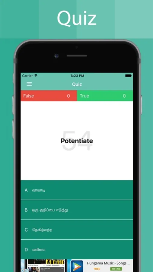 This Tamil Dictionary Contains Quiz too. you can test you Tamil skills using this multiple choice quiz and you can improve your Tamil.