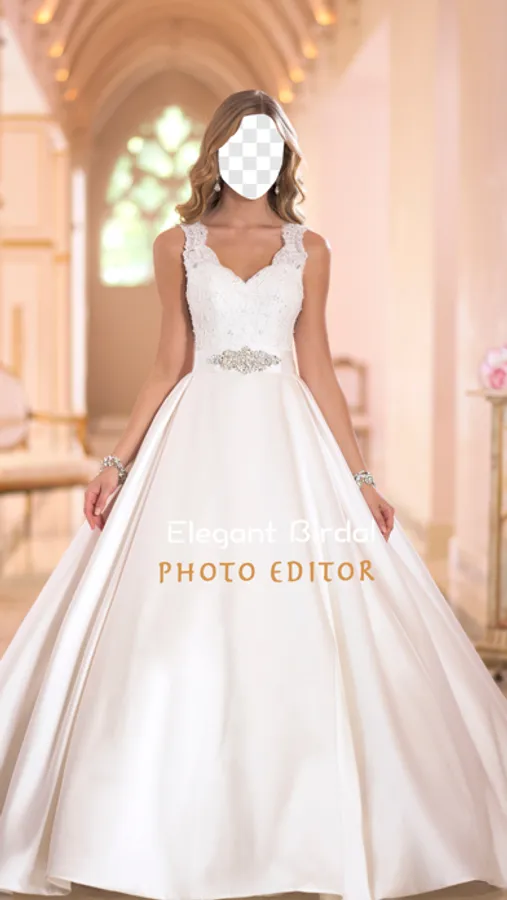 Share your lovely and pretty wedding dress photo to your family and friends with our Elegant Bridal Dress Photo Editor app.