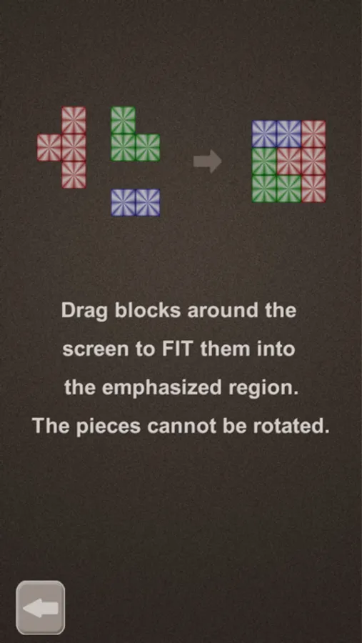 Move the blocks on the screen to fit into the emphasized region at the center of your screen.