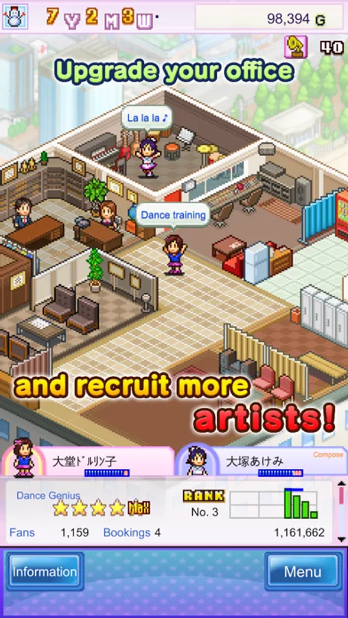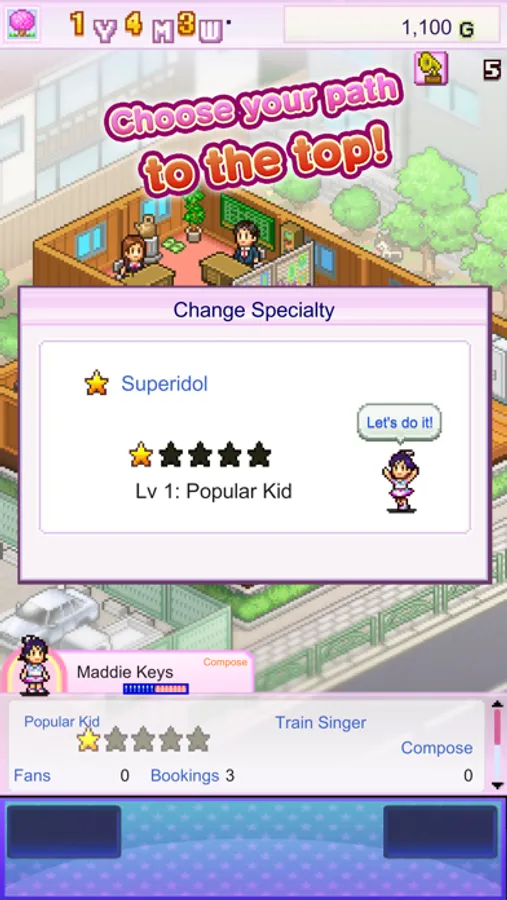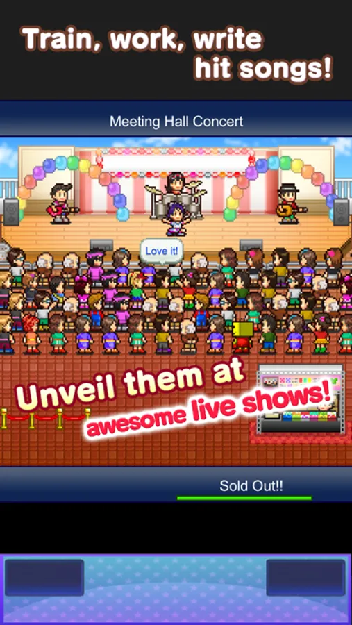 As their fans increase, you'll get access to more jobs and sell more albums and merchandise! Build a wide fanbase and aim for the prestigious music prizes from each record company!