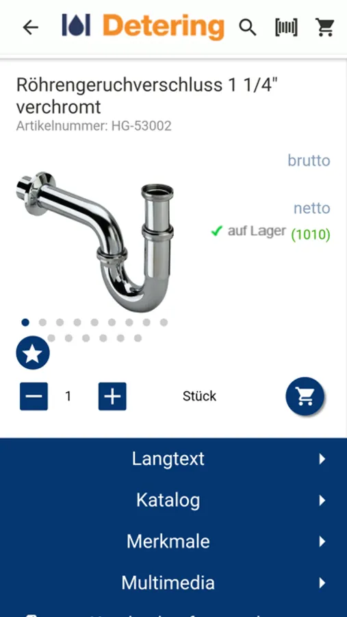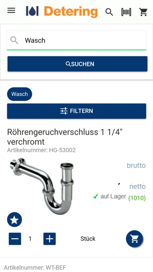 Die APP der Detering-Gruppe - Vereint Artikelsuche, Verfügbarkeitsprüfung und Bestellmöglichkeit in einer APP.