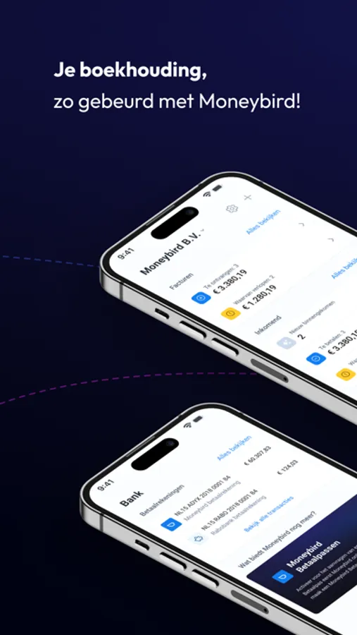 Met de boekhoudapp van Moneybird heb je alles wat je nodig hebt om je boekhouding compleet te maken, en dat vanuit je broekzak. Je doet dus altijd en overal zorgeloos je volledige boekhouding.