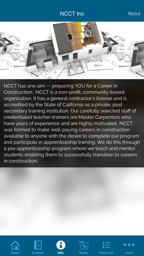 NCCT has one aim -- preparing YOU for a Career in Construction.. NCCT is a non-profit, community-based organization. It has a general contractor’s license and is accredited by the State of California as a private, post secondary training institution. Our carefully selected staff of credentialed teacher-trainers are Master Carpenters who have years of experience and are highly motivated.. NCCT was formed to make well-paying careers in construction available to anyone with the desire to complete our program and participate in apprenticeship training. We do this through a pre-apprenticeship program where we teach and mentor students enabling them to successfully transition to careers in construction.
