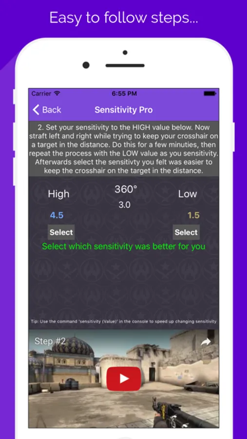 Sensitivity Pro for CSGO is designed to help you find the sensitivity that best suits your mouse setup. The easy-to-follow steps, including videos, guide you through the process, making the task quick and painless.