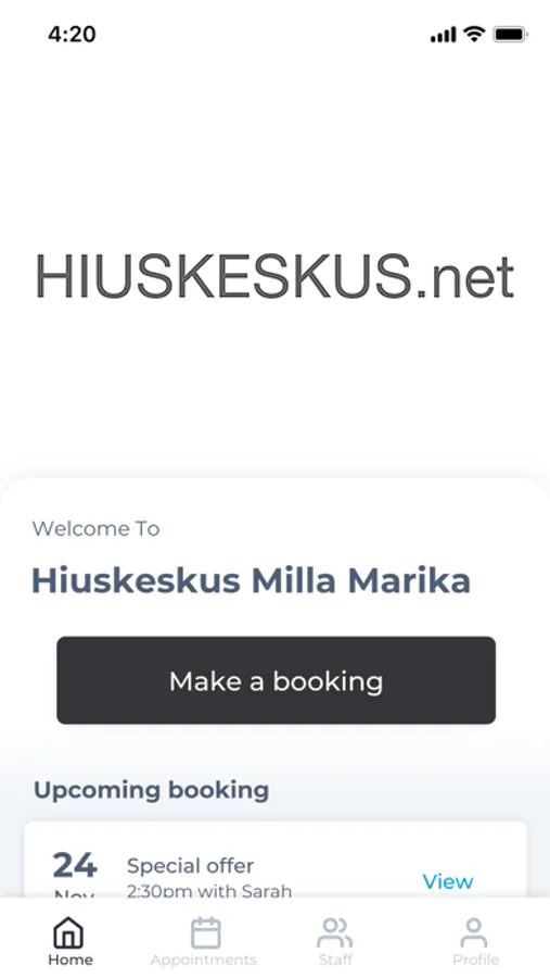 The Hiuskeskus Milla Marika app makes booking your appointments and managing your loyalty points even easier. You're just a few taps away from feeling good and looking great!