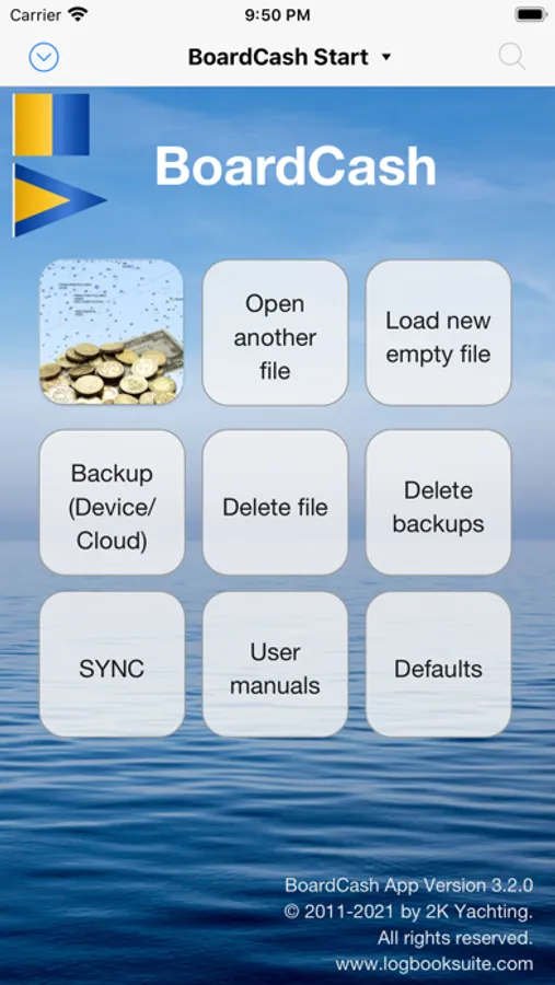 Your "BoardCash" files can be copied between "Logbook Suite" on PC or iOS and the app "BoardCash" using a cloud service or using iTunes. The functions for importing data from the digital logbook "Logbook" (crew list, port charges, fuel costs) are not shown in the app "BoardCash". When your "BoardCash" file is opened in "Logbook Suite", this functions are available as usual.
