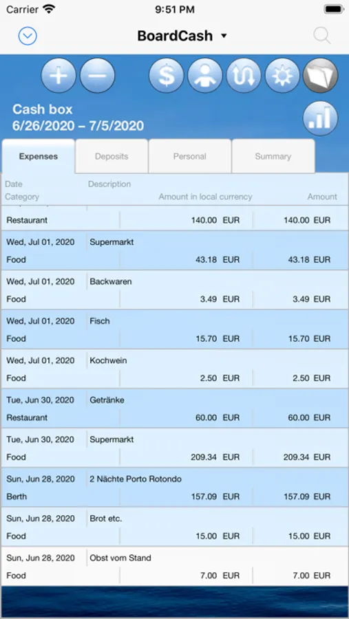 During sailing cruises managing the board cash box is usually not among the most popular tasks on board. However, one should keep track of the expenses and the cash position. And this is a cinch with "BoardCash".