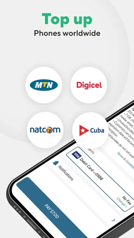 • Easily top up the prepaid mobile phones of your friends and family in more than 90 countries with more than 150 carriers.