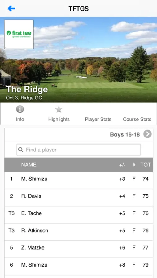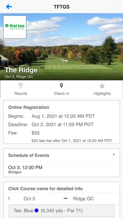 • Check in to TFTGS events and keep the scorecard on your phone.