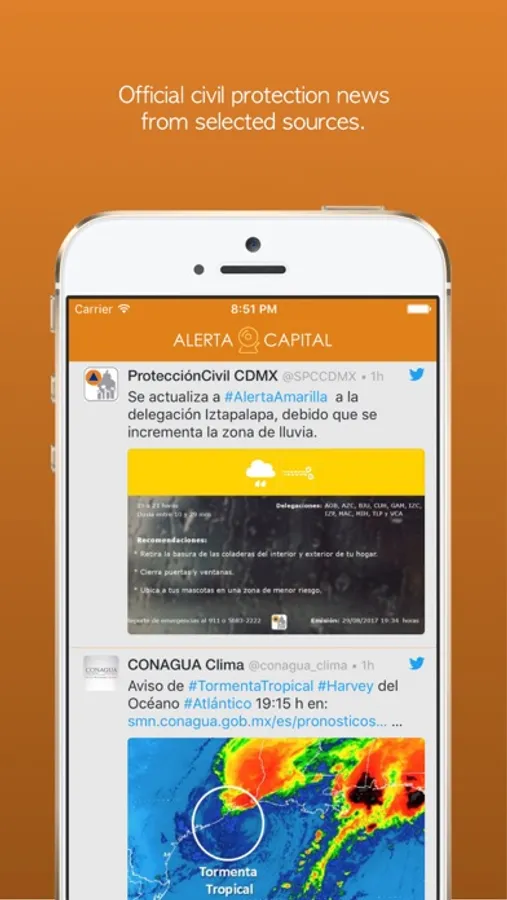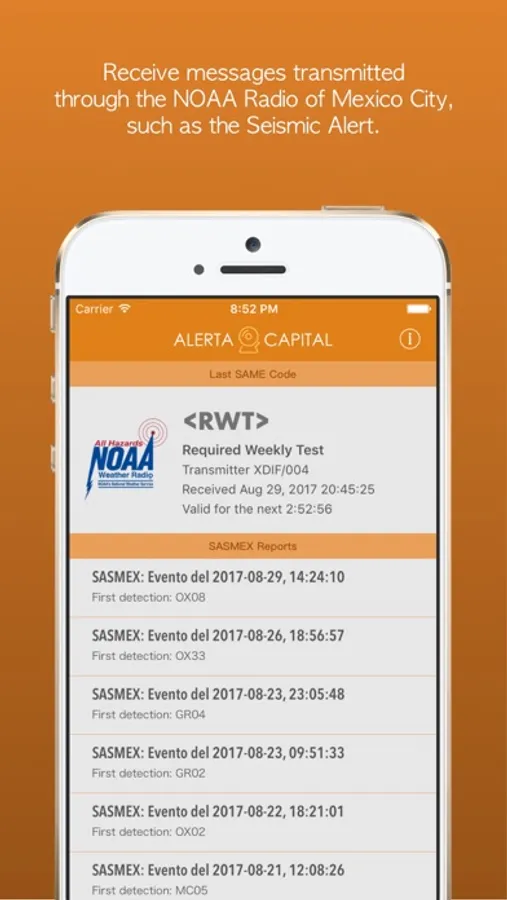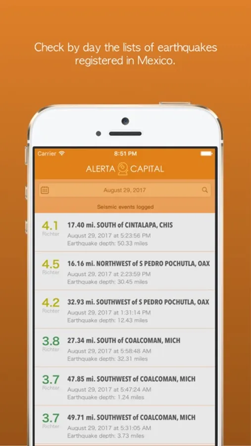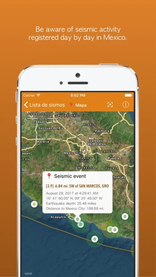 • We keep you informed about seismic events registered in the Mexican territory with details of intensity, location and time.