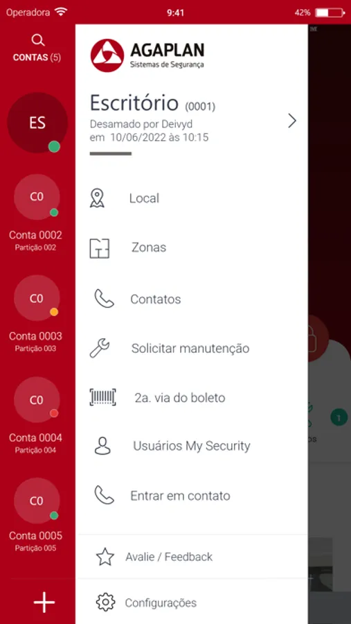 O Agaplan My Security é um aplicativo móvel no qual o cliente poderá acompanhar via celular ou tablet todas as atividades de seu Sistema de Segurança. Por meio do aplicativo o usuário poderá saber o status do painel de alarme, armá-lo e desarmá-lo, verificar eventos e receber notificações em tempo real, além de visualizar as câmeras ao vivo e realizar chamadas telefônicas para contatos cadastrados no seu perfil.