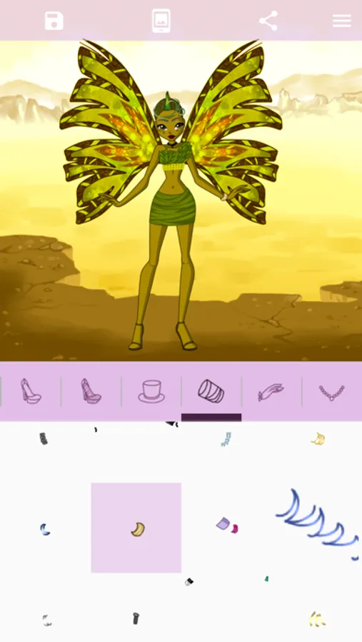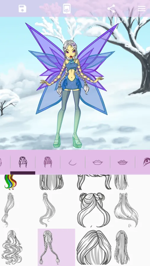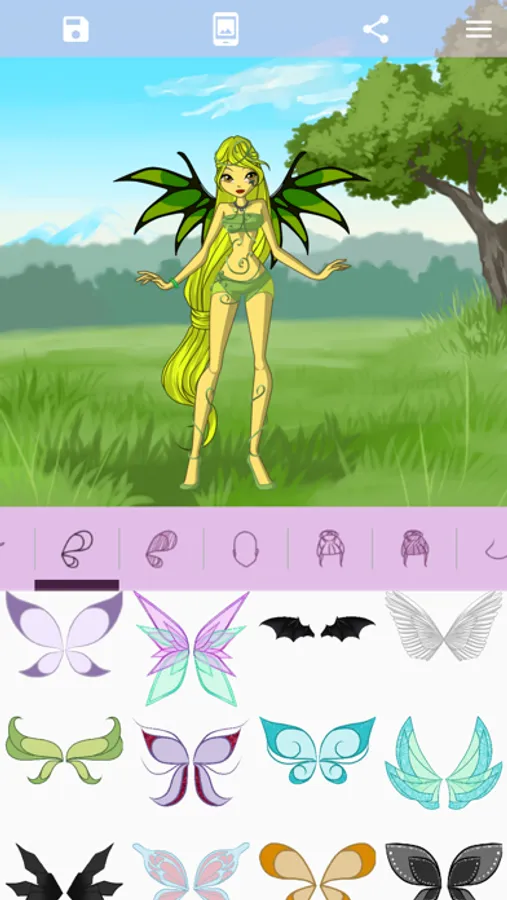 Want to create an avatar of a new cartoonish fairy? Or maybe you dream of a picture of your favorite character but are not good at drawing? Our game is what you need! The app offers a large variety of fragments to make up your original fairy character. Customize her eyes, lips, cheeks, make-up, hair, clothes, wings, and other attributes. Share your pic or set it as wallpaper.