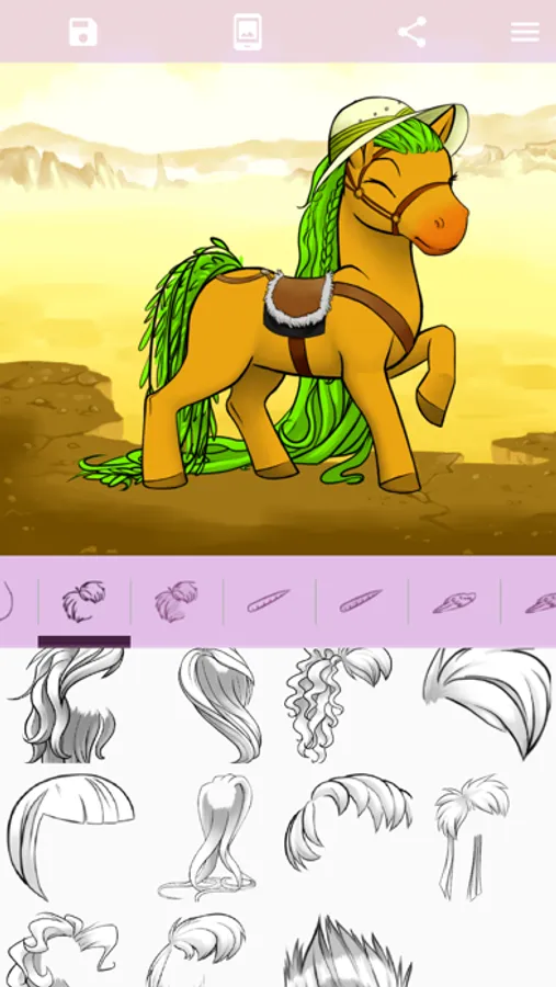In our game you can easily set up a variety of parts of its wonderful character: clothing, horn, wings, mane, makeup, hairstyle, eye shape, and much more. Moreover, we do not limit you. In the constructor, you can draw a pegasus winged dragonfly or a unicorn horns of a deer... Or put on alicorn skates and send him into the mountains.