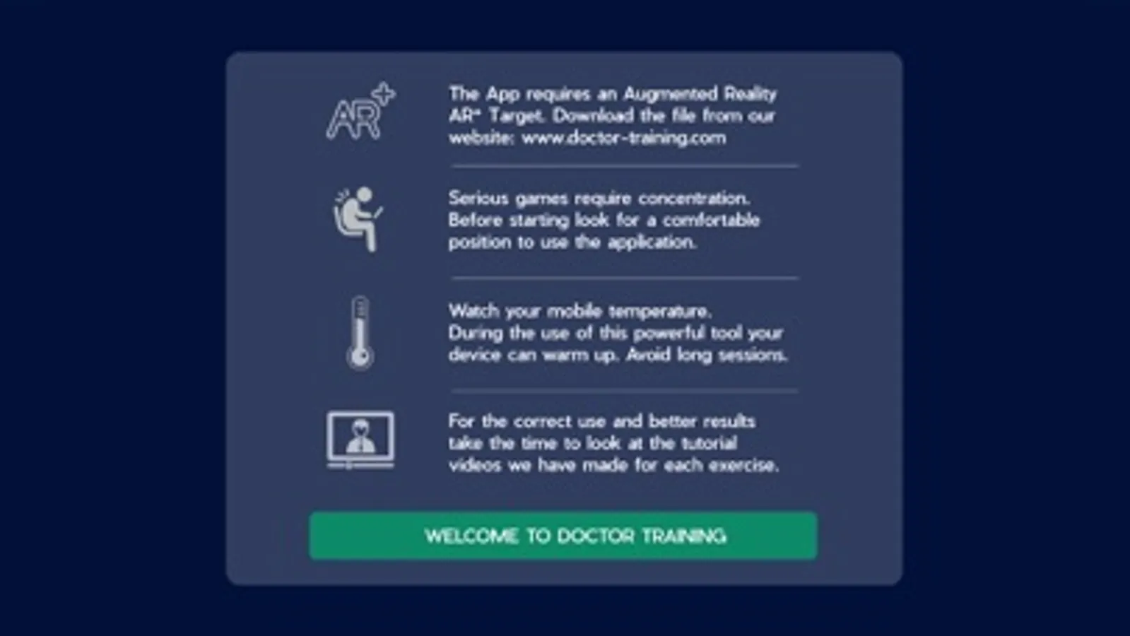 DOCTOR TRAINING uses recognition technology and image tracking with a camera integrated in any smart device (mobiles, tablets).